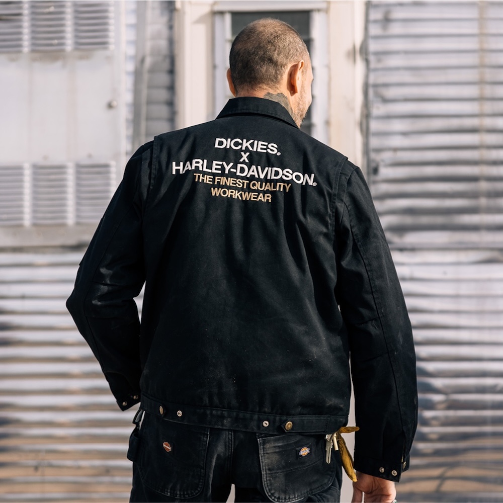 La collaboration Dickies x Harley-Davidson est disponible sur via la boutique en-ligne de Dickies et eshop ainsi que dans les concessions Harley-Davidson.