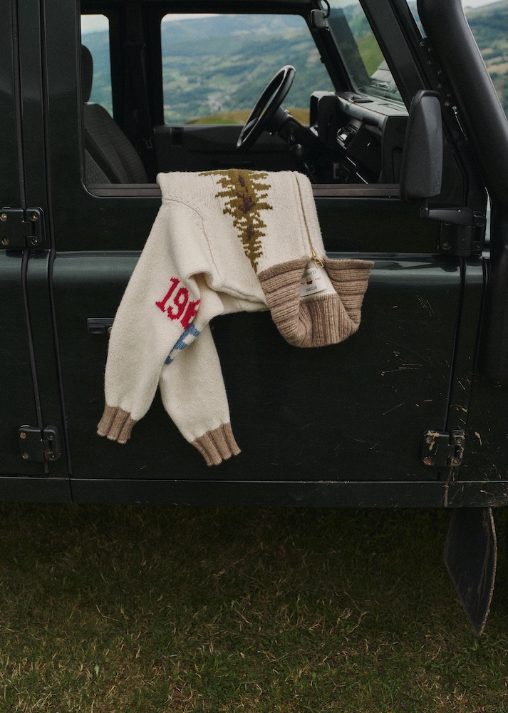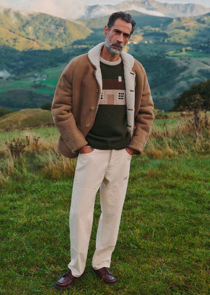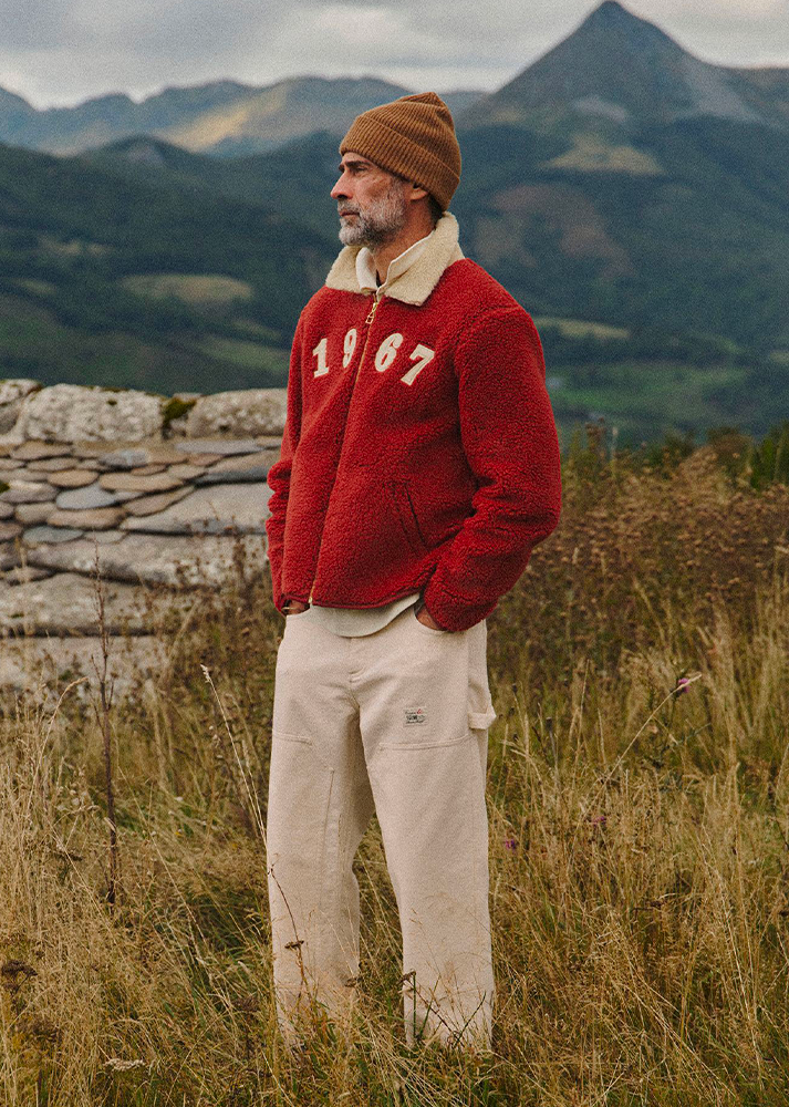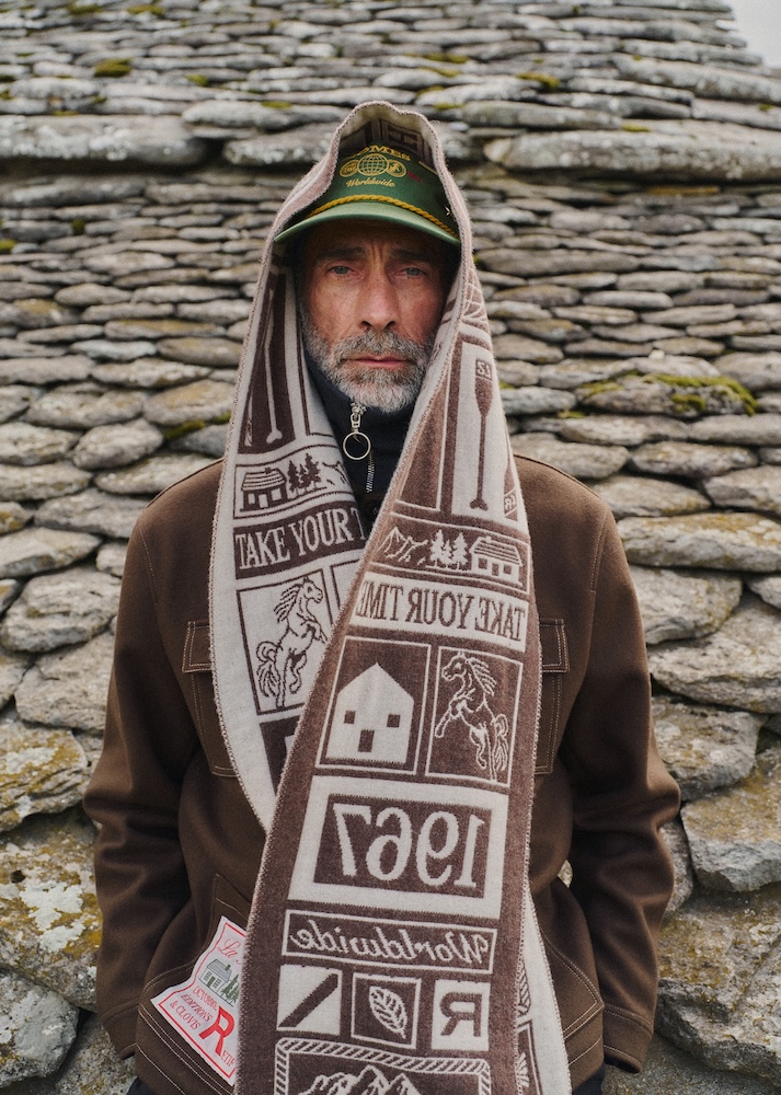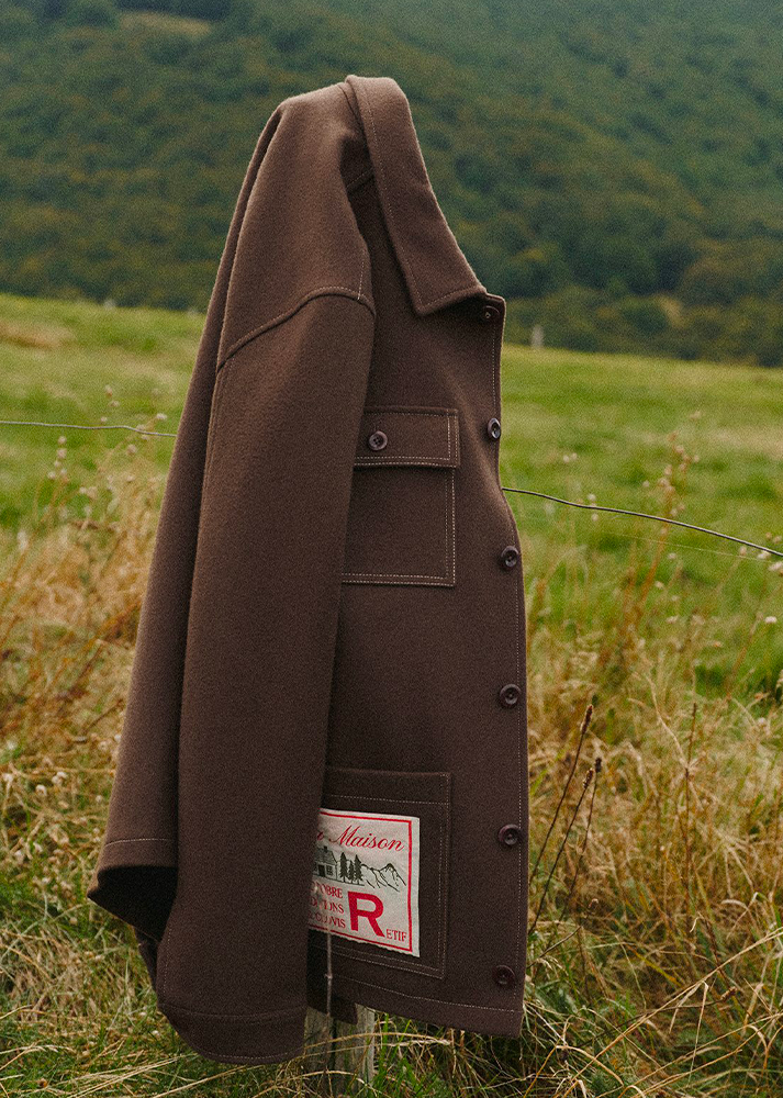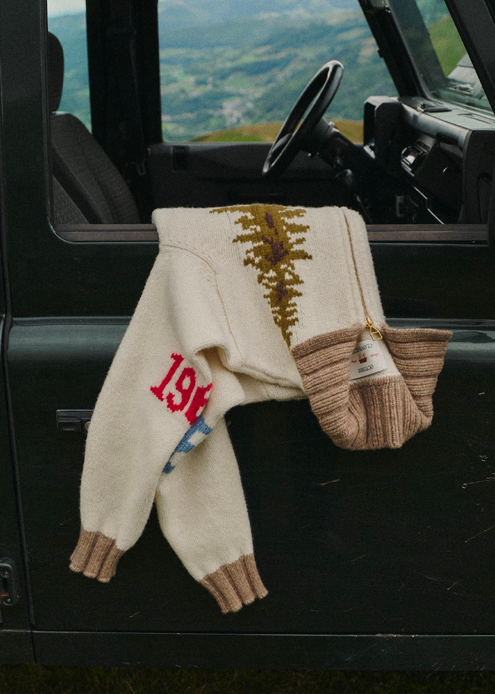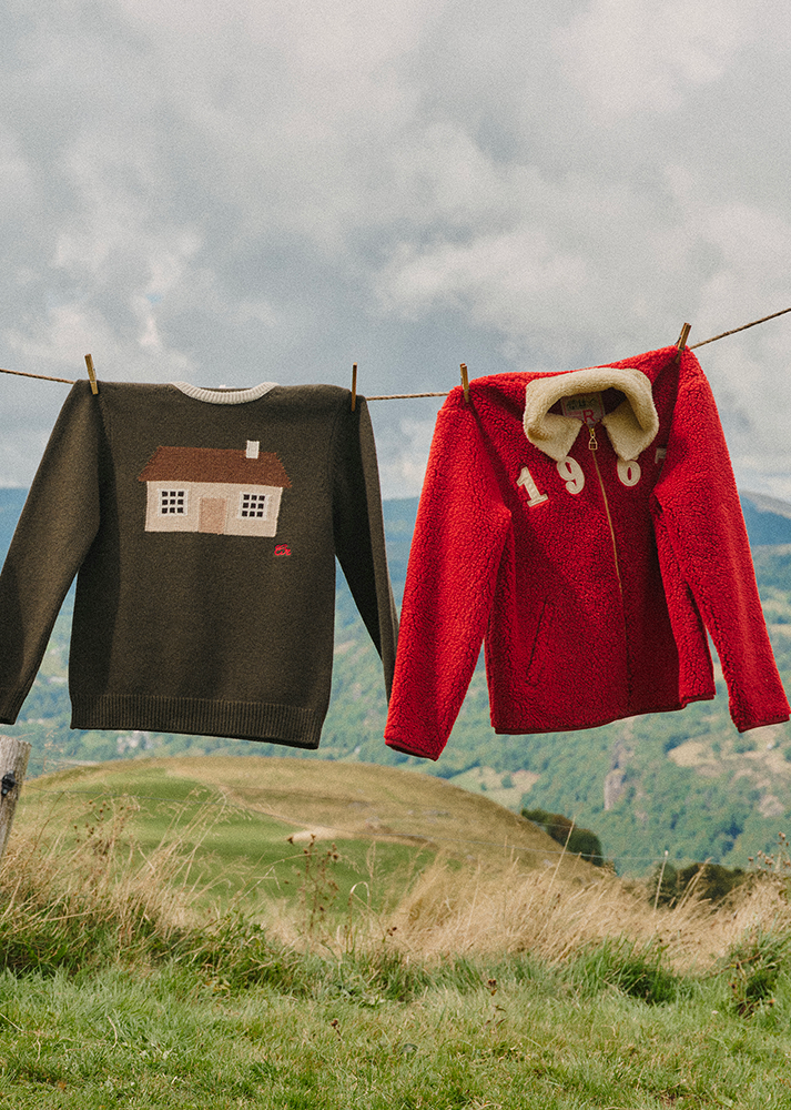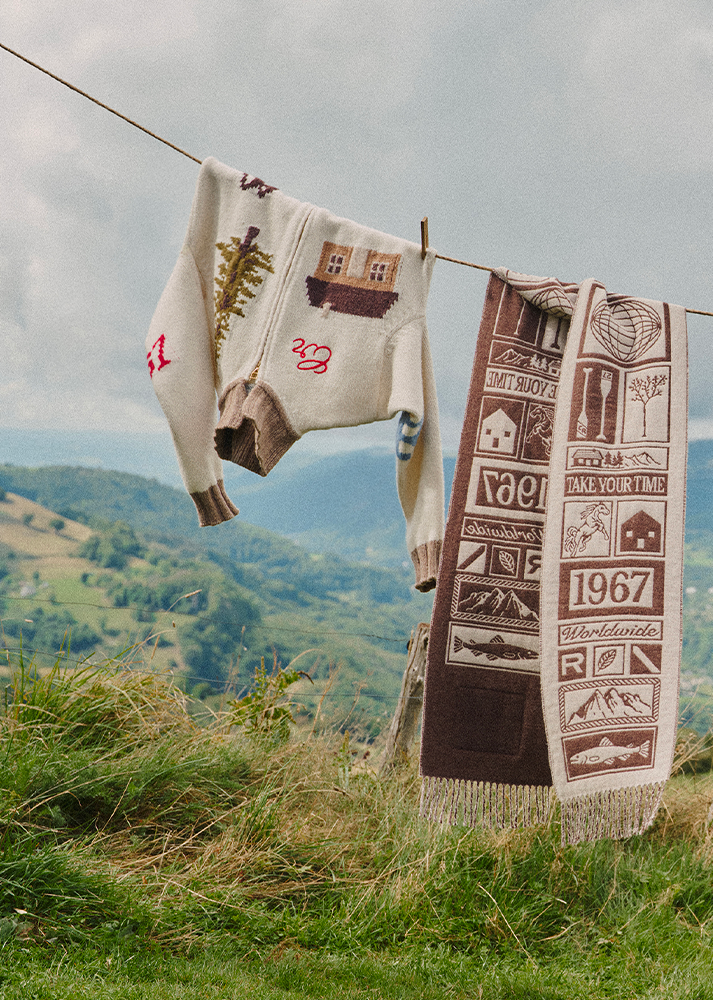 La capsule reprend cet équilibre subtil : entre poésie et fonctionnalité, entre l’objet et le vêtement. On y retrouve le pull Mom’s House, évocation d’une maison douce et familière, la surchemise aux lignes intemporelles, ou encore le pantalon worker et le sac week-end aux multiples patchs, pièce fétiche de l’artiste. Chaque création est pensée comme un talisman, une pièce à vivre, à patiner, à transmettre.