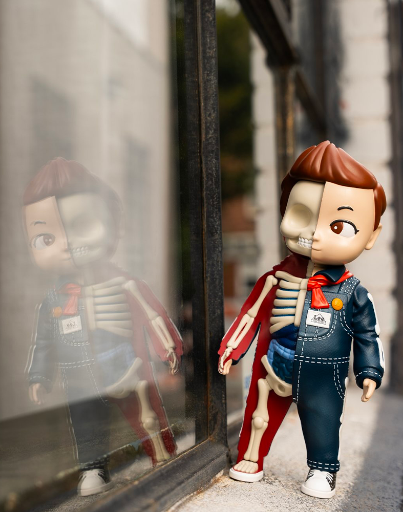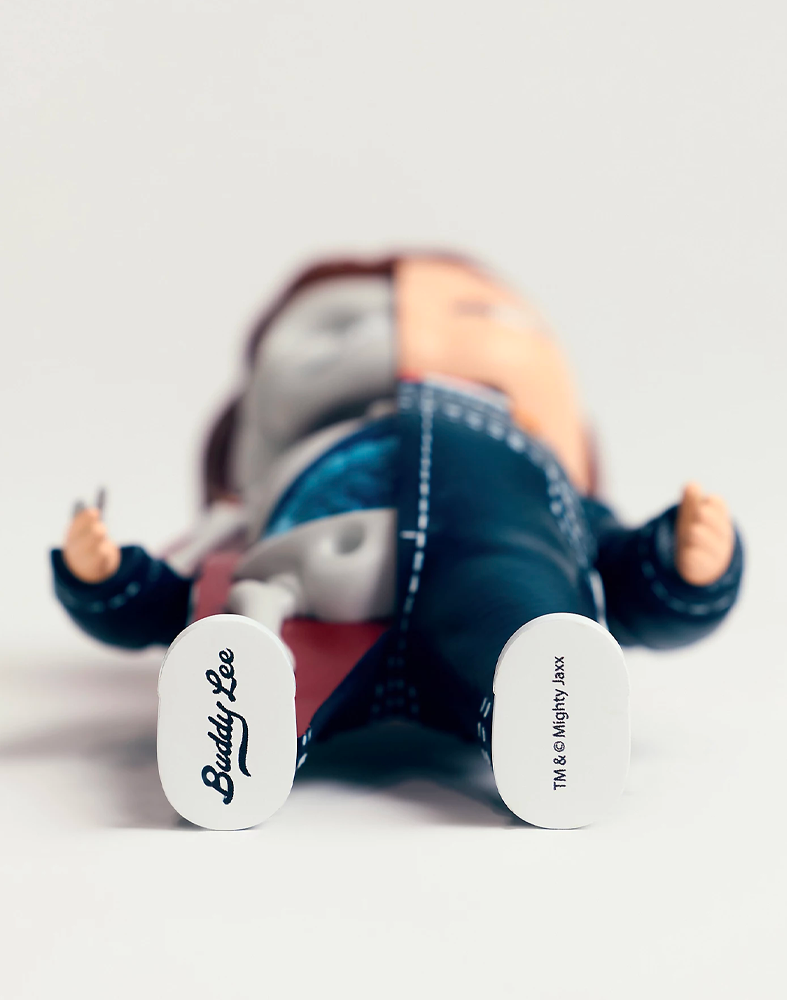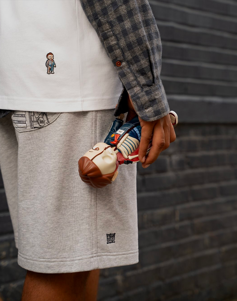 Né il y a plus d’un siècle, Buddy Lee le petit mannequin publicitaire devenu symbole du savoir-faire de la marque est ici revisité à travers la vision anatomique de Jason Freeny. Son design signature, mi-réaliste mi-surréaliste, s’applique à la fois à une capsule mode exclusive et à une sculpture de collection de 9 pouces en édition limitée. Le résultat ? Une fusion étonnante entre héritage workwear et créativité contemporaine, entre authenticité et expérimentation visuelle.