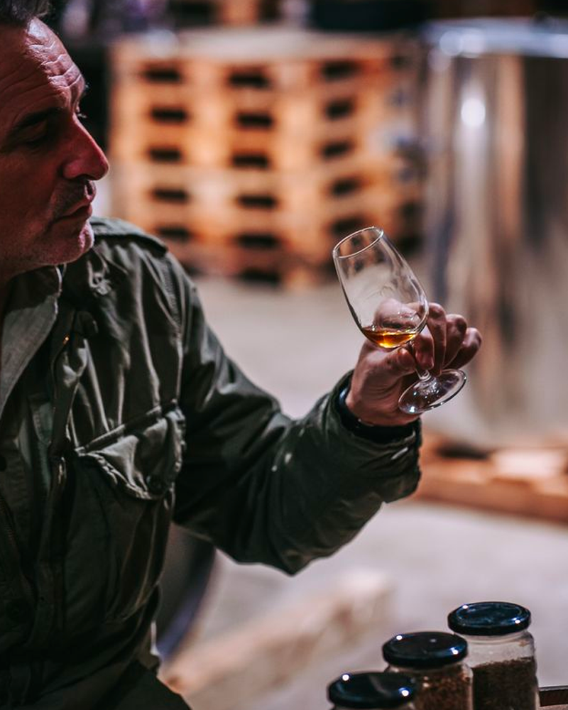 Née à Bordeaux, dans le quartier brut et vibrant de Bacalan, la distillerie s’impose comme un OVNI créatif. Ici, rien n’est tempéré : ni le chai, volontairement non climatisé pour accélérer la maturation, ni la vision, qui assume l’obsession du détail. Les fûts vivent les mêmes amplitudes thermiques que la ville, les distillats gagnent en caractère, et les “parts des anges” montent parfois jusqu’à 20 % en trois ans. Un vieillissement express, comme s’il se passait quelque chose de cosmique dans ce hangar.