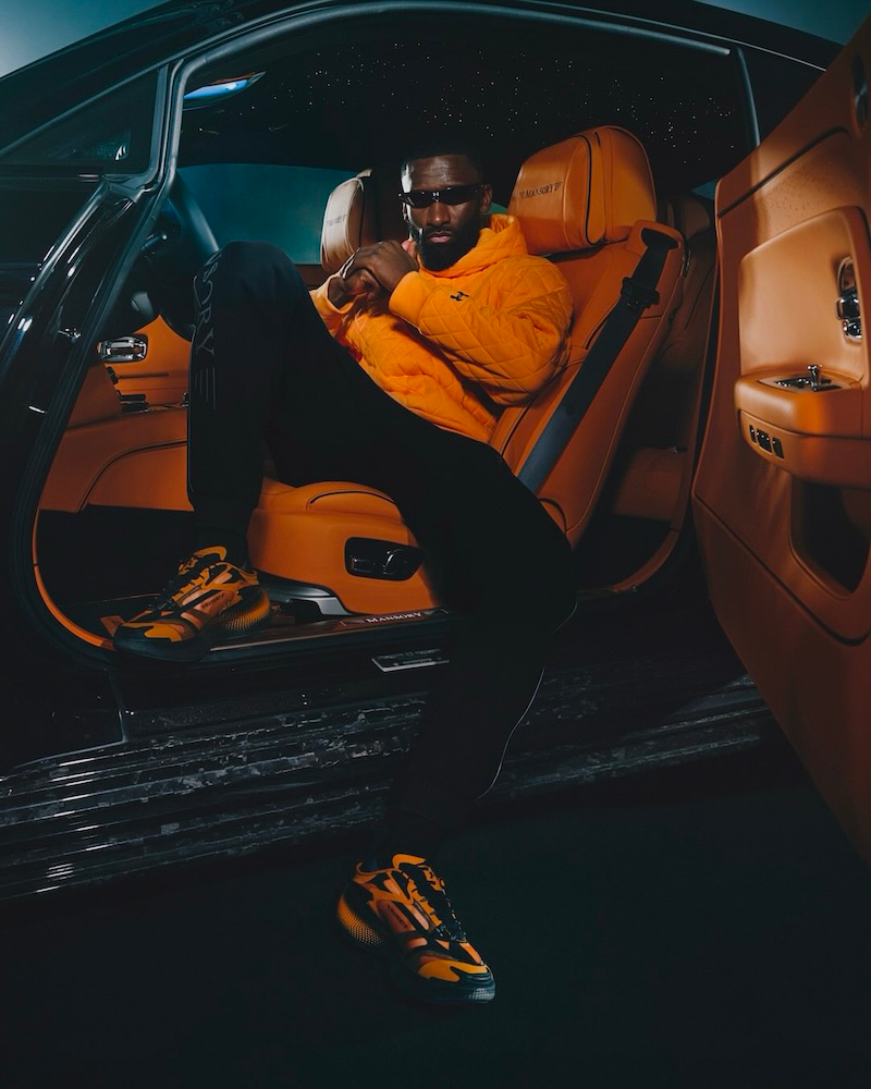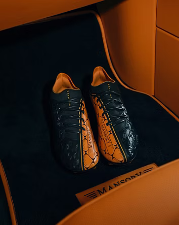La palette de couleurs noir et orange du Spectre Equista unique donne le ton à toute la collection. Côté vestiaire, on retrouve un sweat à la coupe relaxed qui reprend le motif de surpiqûres en diamant caractéristique des intérieurs automobiles Mansory. Il est accompagné d’un t-shirt boxy avec le logo de l’atelier en relief et d’une veste de survêtement au colorblocking nostalgique. Le pantalon de jogging et une gamme de t-shirts graphiques style souvenir complètent l’ensemble. Mais c’est vraiment du côté des sneakers que les choses deviennent intéressantes.