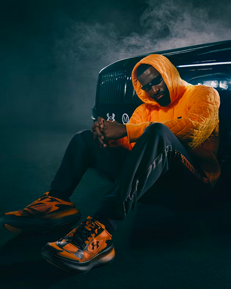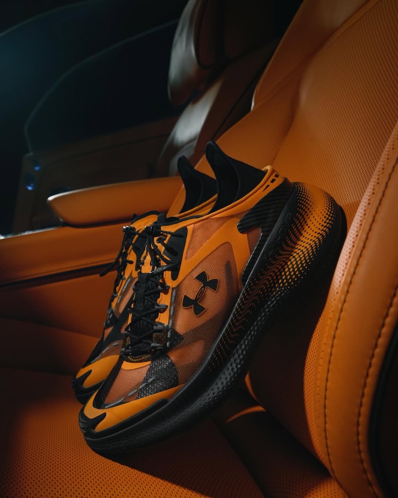 Under Armour et Mansory revisitent le modèle Echo avec un colorway noir et orange appliqué sur une tige technique. Les détails qui font la différence incluent une cage de talon en fibre de carbone et un imprimé travaillé sur la semelle intermédiaire en mousse Hovr. Cette version propose aussi un sockliner amovible qui permet de transformer la silhouette en mule, offrant deux looks en un.